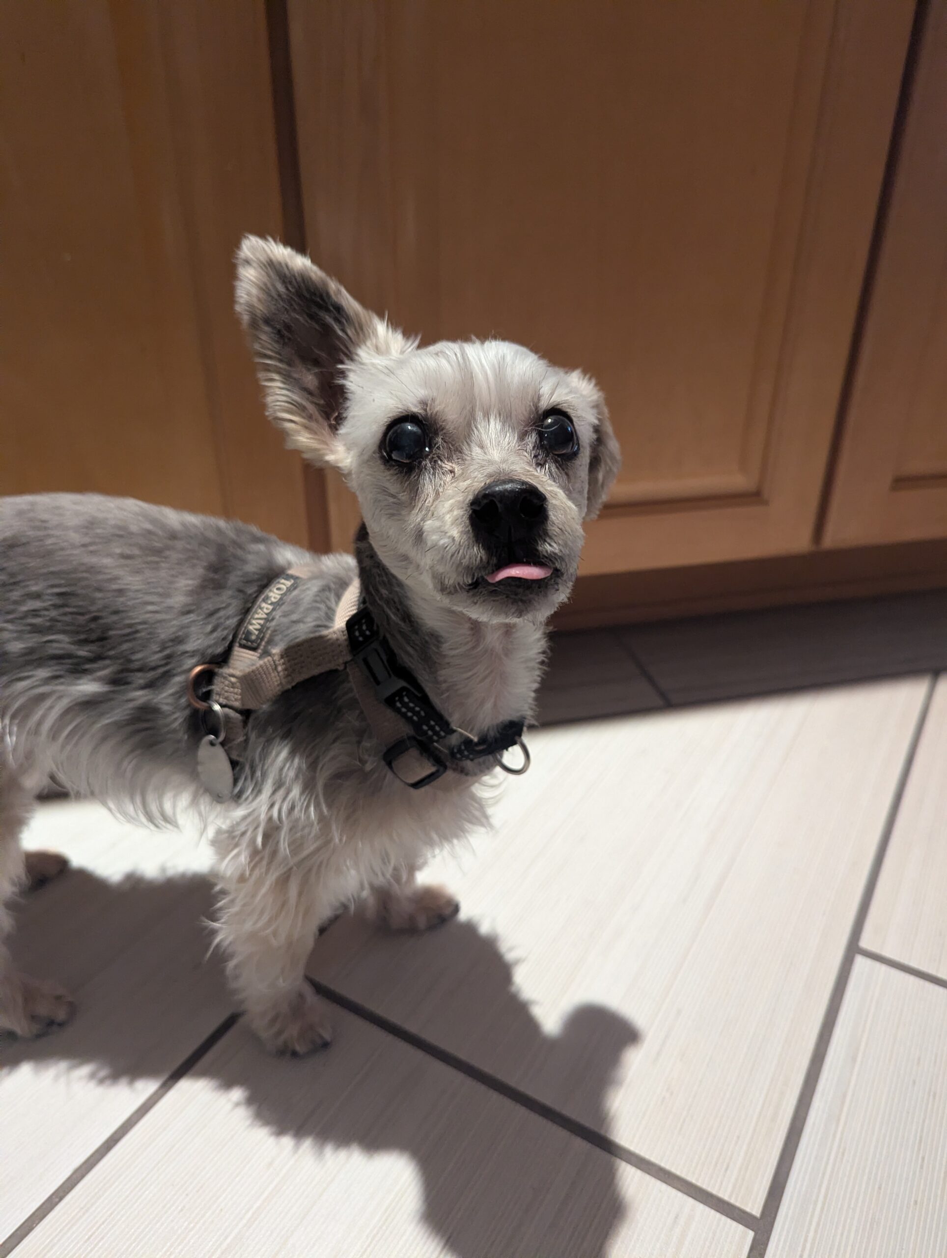 12-29-25: Chester, his foster mom calls him Chetter, is a jaunty little terrier mix. The home who gave him up said he is a silky terrier mix. Chet just competed dog school where he showed his intelligence by being a star student and promptly learning. He still has some separation anxiety but this has gotten better as he has become more trusting and familiar with his foster home’s routine.