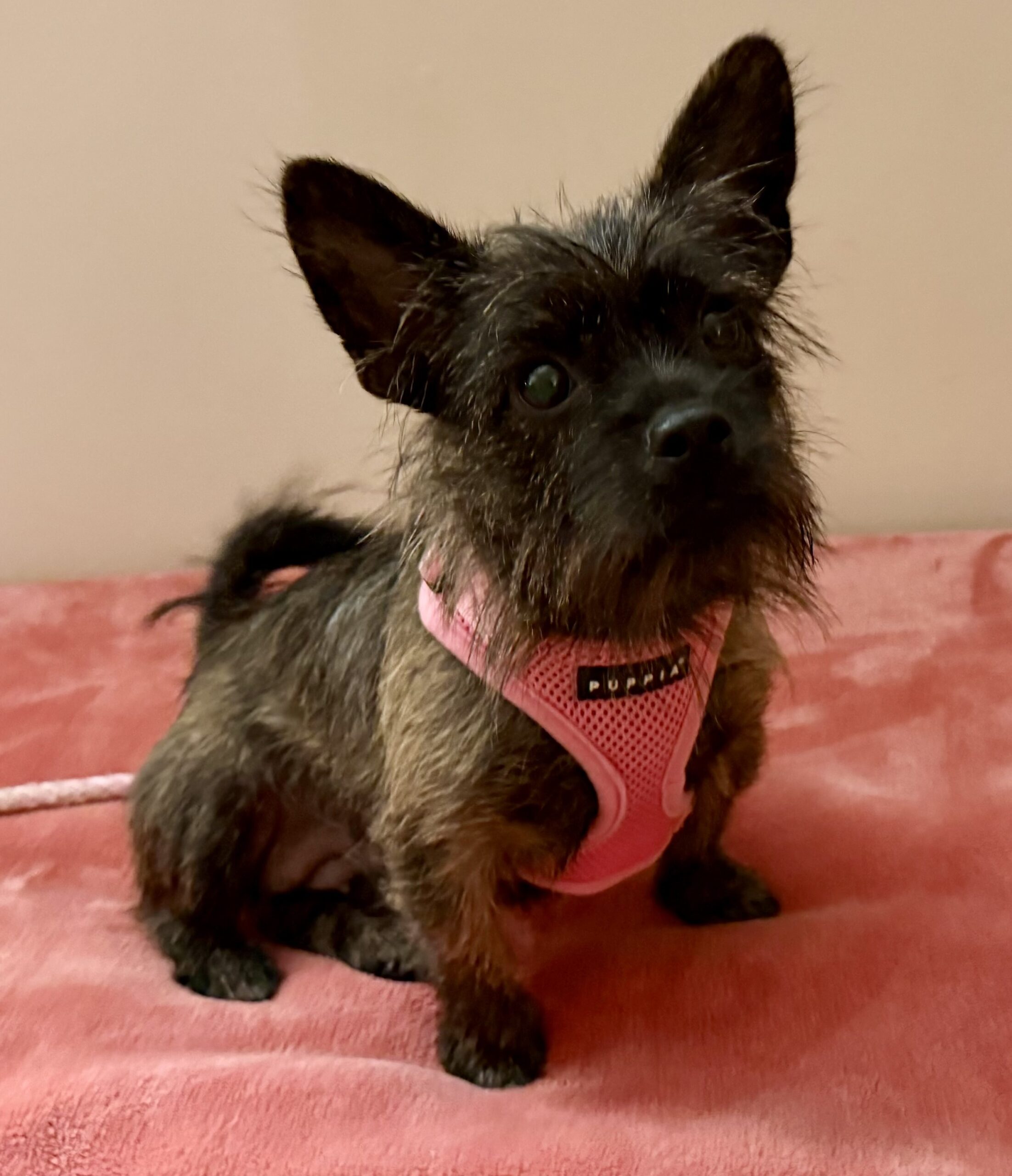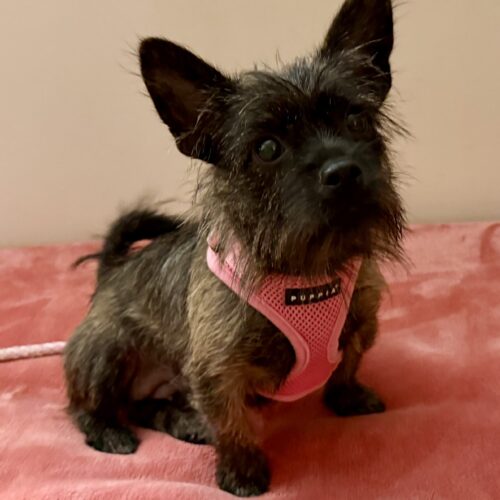 This beautiful 1-year-old Cairn Terrier mix is 12 lbs of pure sweetness, wrapped in a stunning brindle coat. Please keep checking back here for new updates on Kinley.
