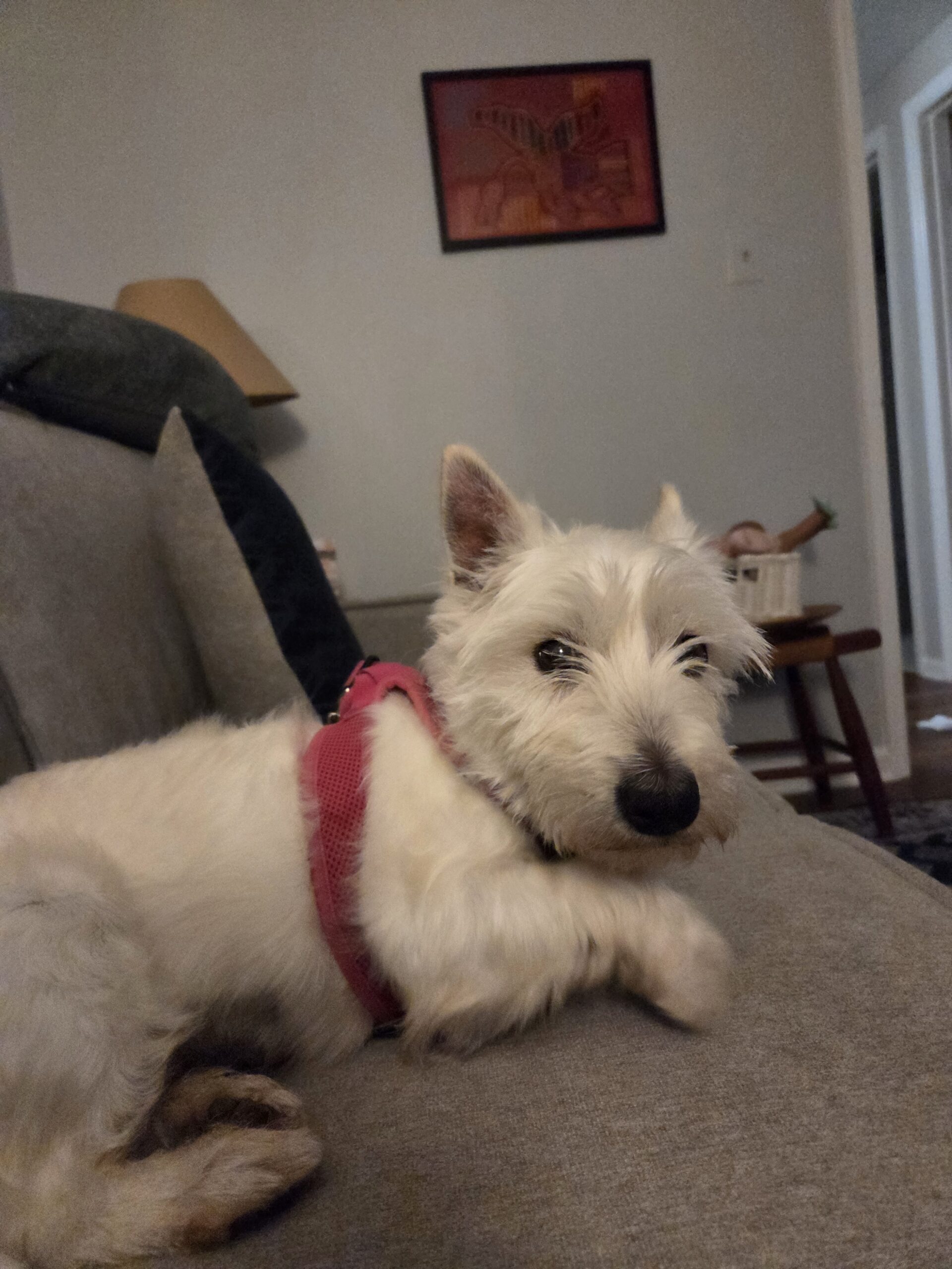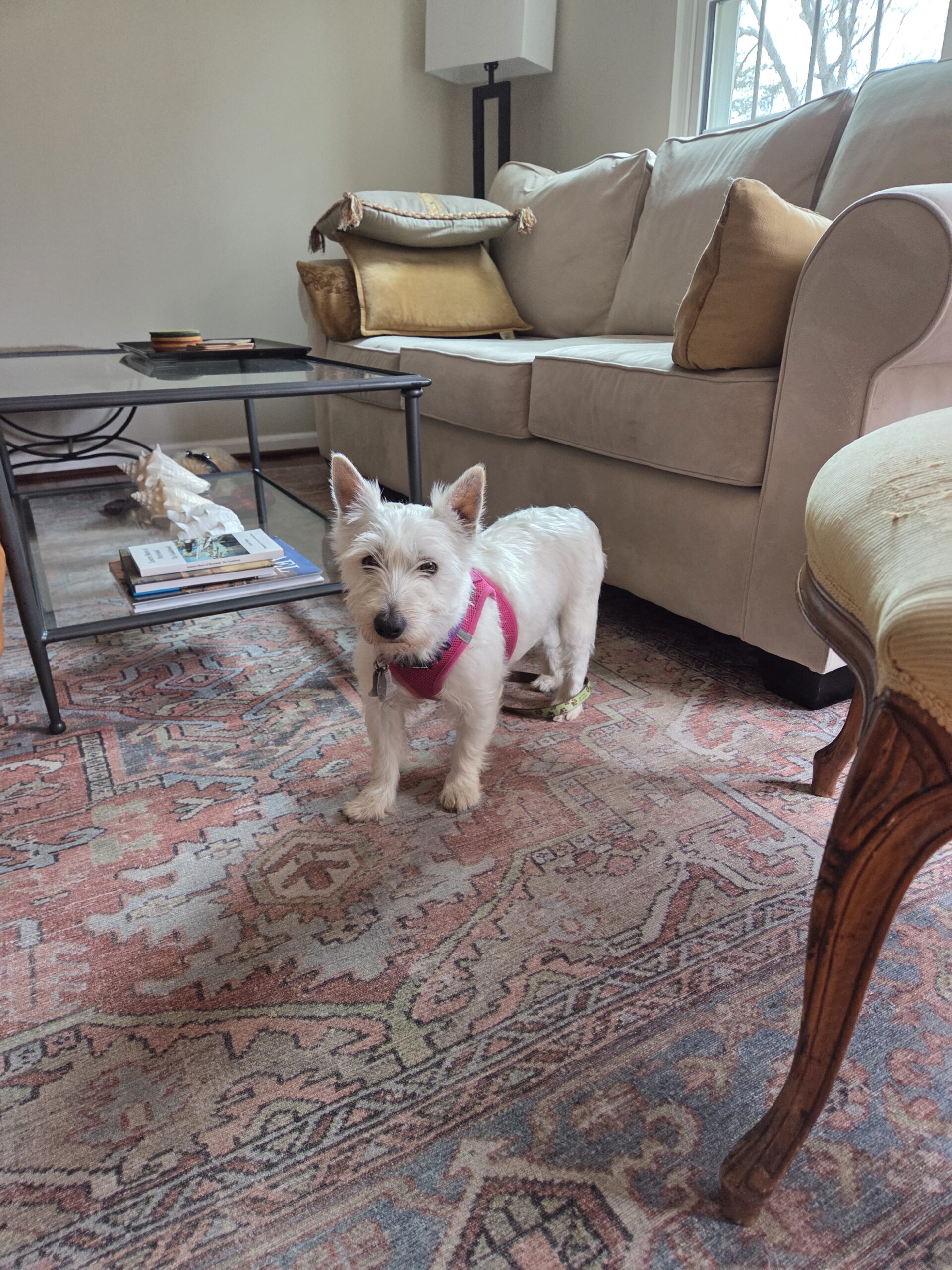 My name is Opal. I'm a West Highland Terrier and I'm 3-4 years old. Right now I'm a little shy, but I'm getting more outgoing...slowly. I came into CCTR with 3 other Westie gals. Please check back here soon to find out more about me.