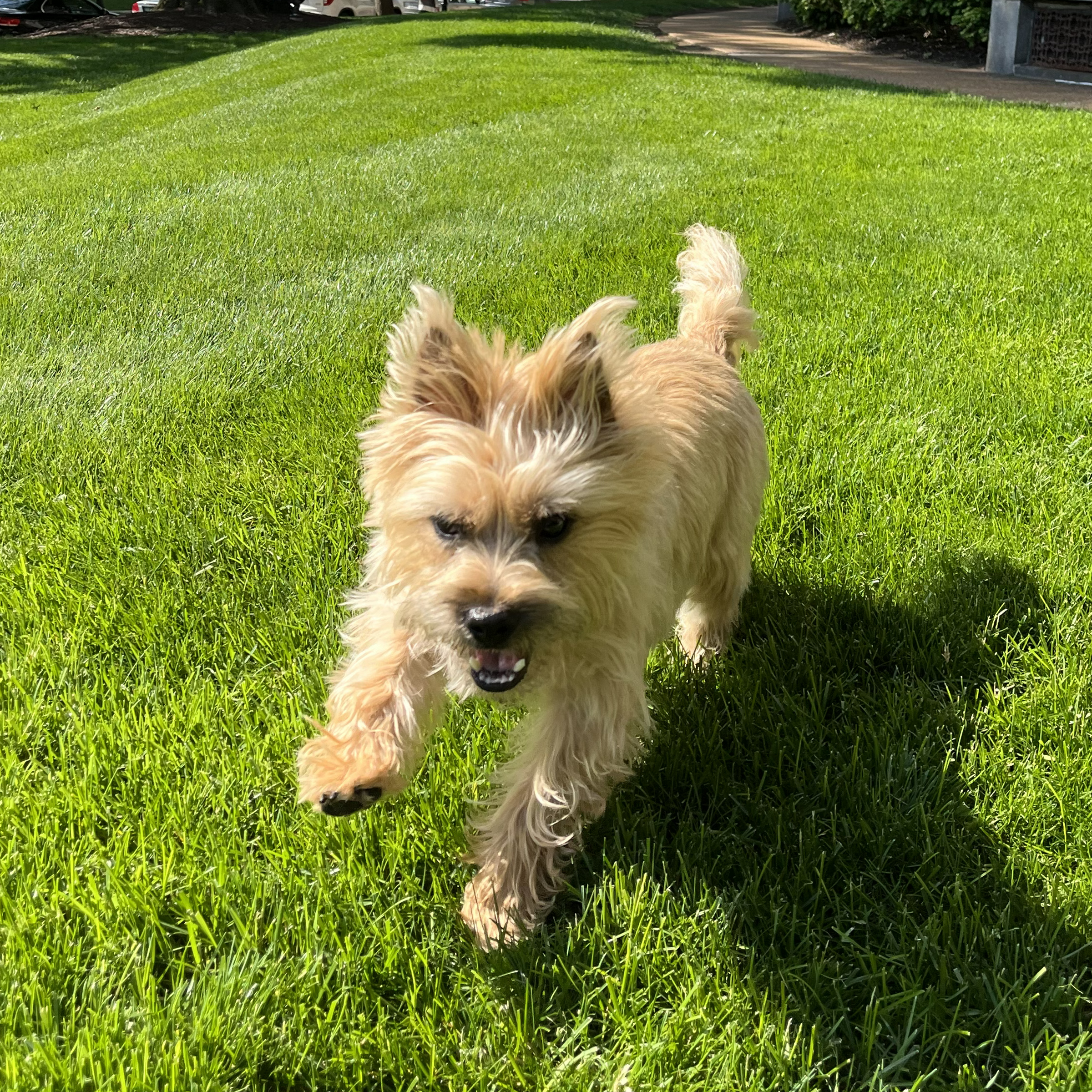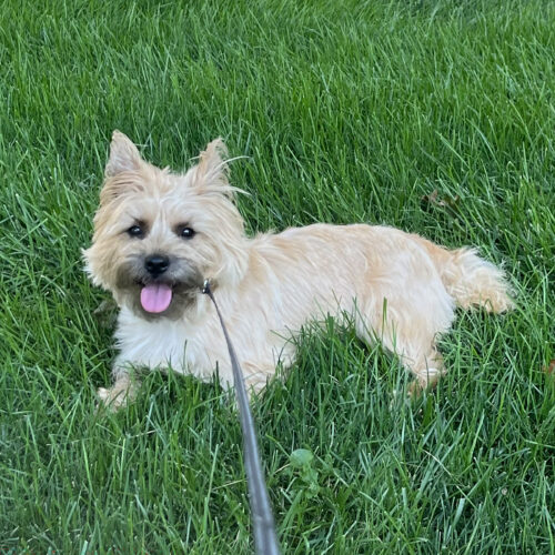 Meet Porgie, a stunning 4.5-year-old Cairn Terrier with a beautiful wheaten coat and a personality that will steal your heart! This handsome 22-pound boy comes to us well-trained and wonderfully cared for, ready to bring joy to his forever home. Porgie is an absolute delight during playtime—he loves fetch so much that he makes the happiest sounds as he bounds around with pure excitement. His adorable quirk? He'll carry a toy in his mouth while simultaneously pushing a ball to you with his nose, showing off both his playfulness and his cleverness. Porgie would do best in a home without small children, as their unpredictability is still new to him. He can be guarded around his food and treats, though he trusts his humans enough to allow them to take bones away when he needs a break from that guarding behavior. If you're looking for a loving, well-mannered companion who knows how to have fun and would thrive in the right environment, Porgie is your perfect match!