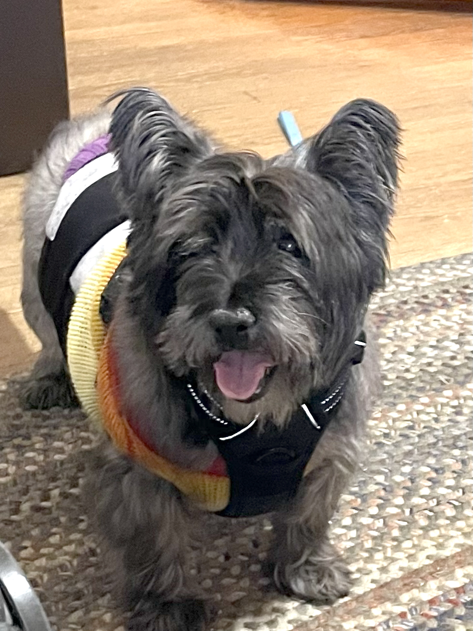 Rennie is a happy, affectionate 13 year old black brindle cairn terrier boy. He came to us an owner surrender. Please check back soon for an update on Rennie's availability for adoption. Thanks!