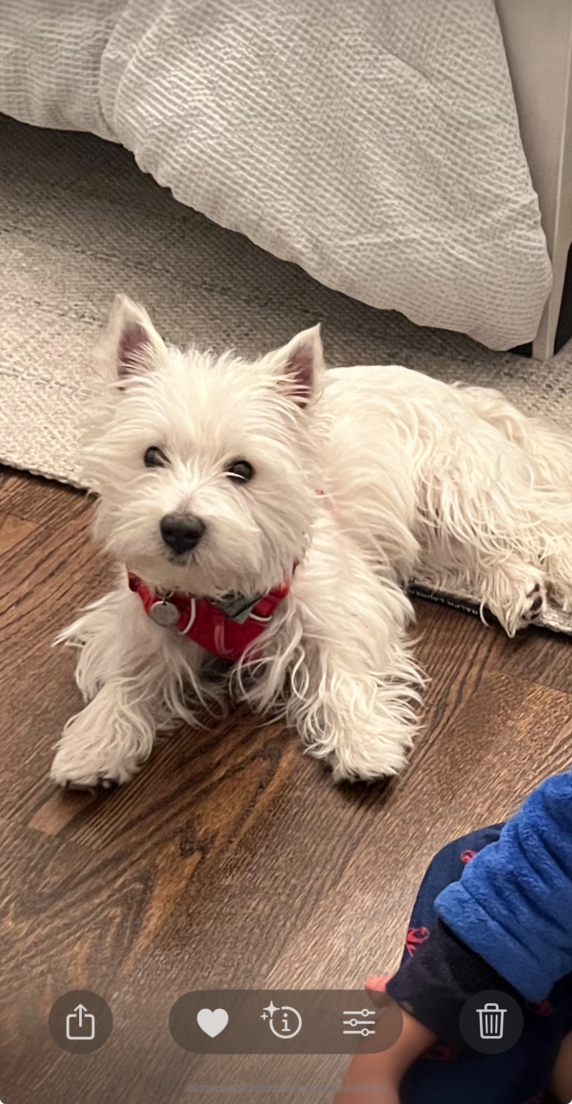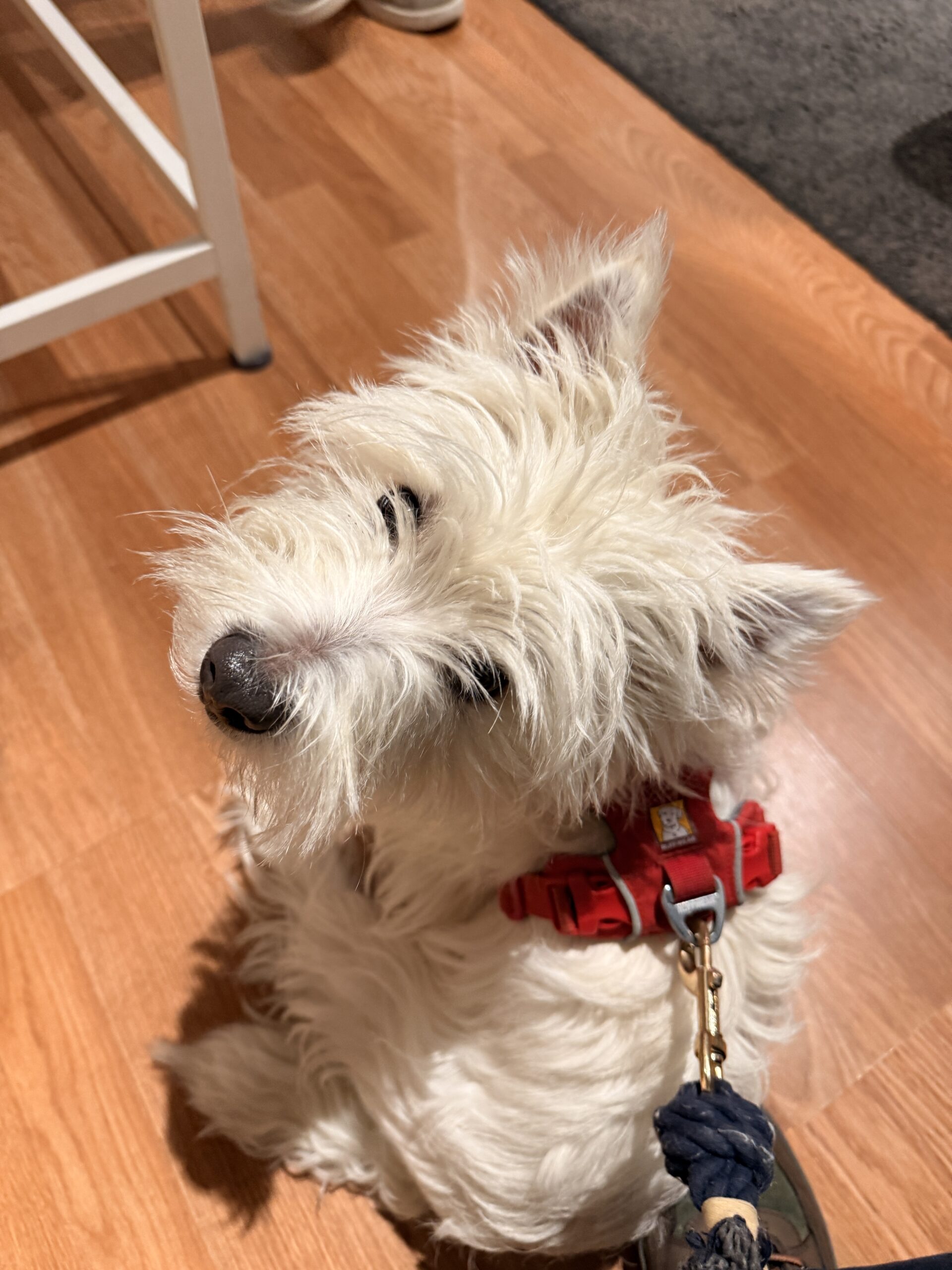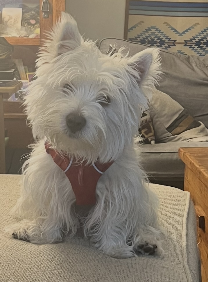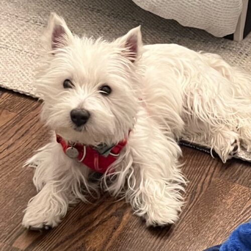 Spud is a 16-month old Westie currently weighing 14 lbs 4 oz. He’s a playful, inquisitive young dog with lots of personality and a very sweet, snuggly side.