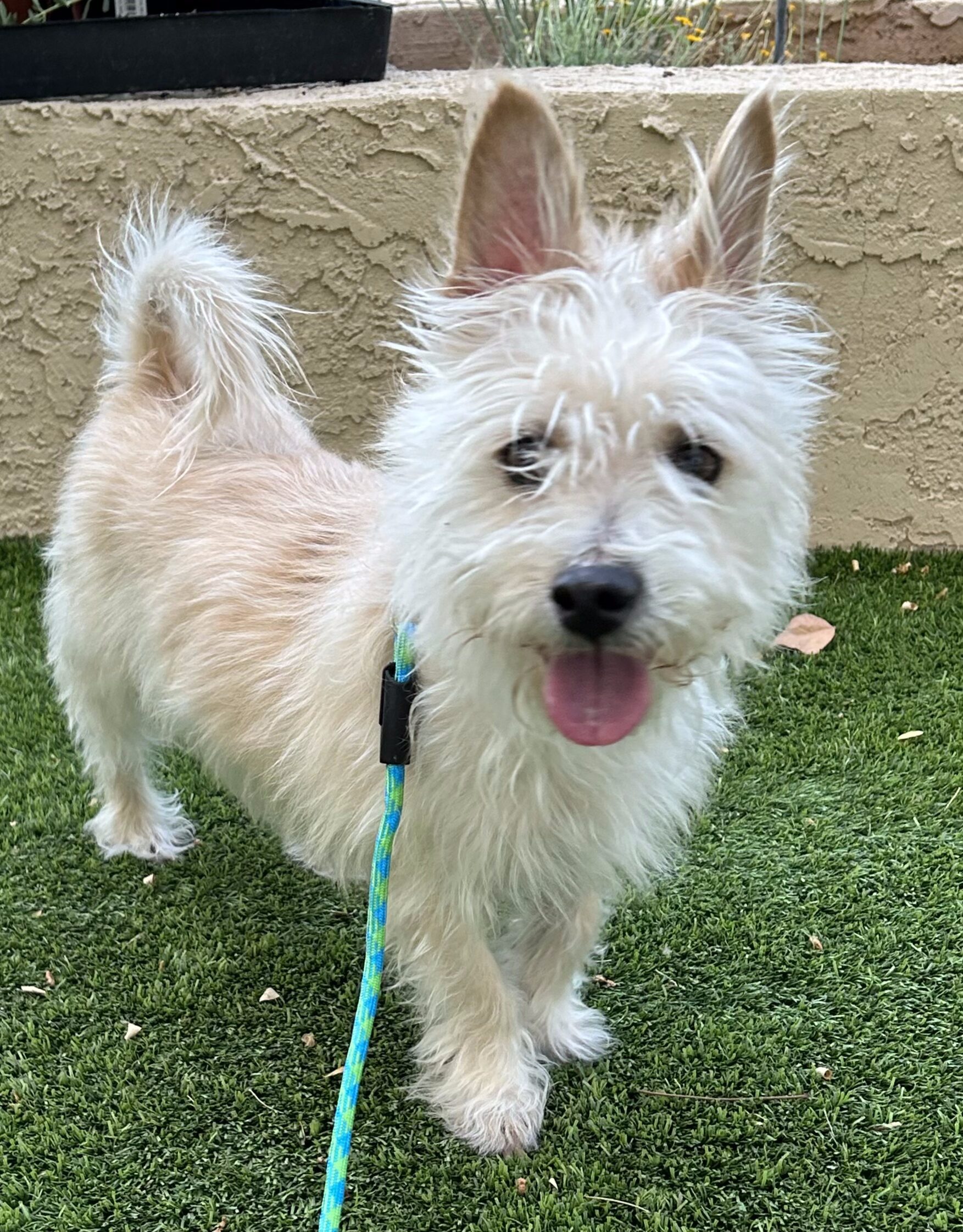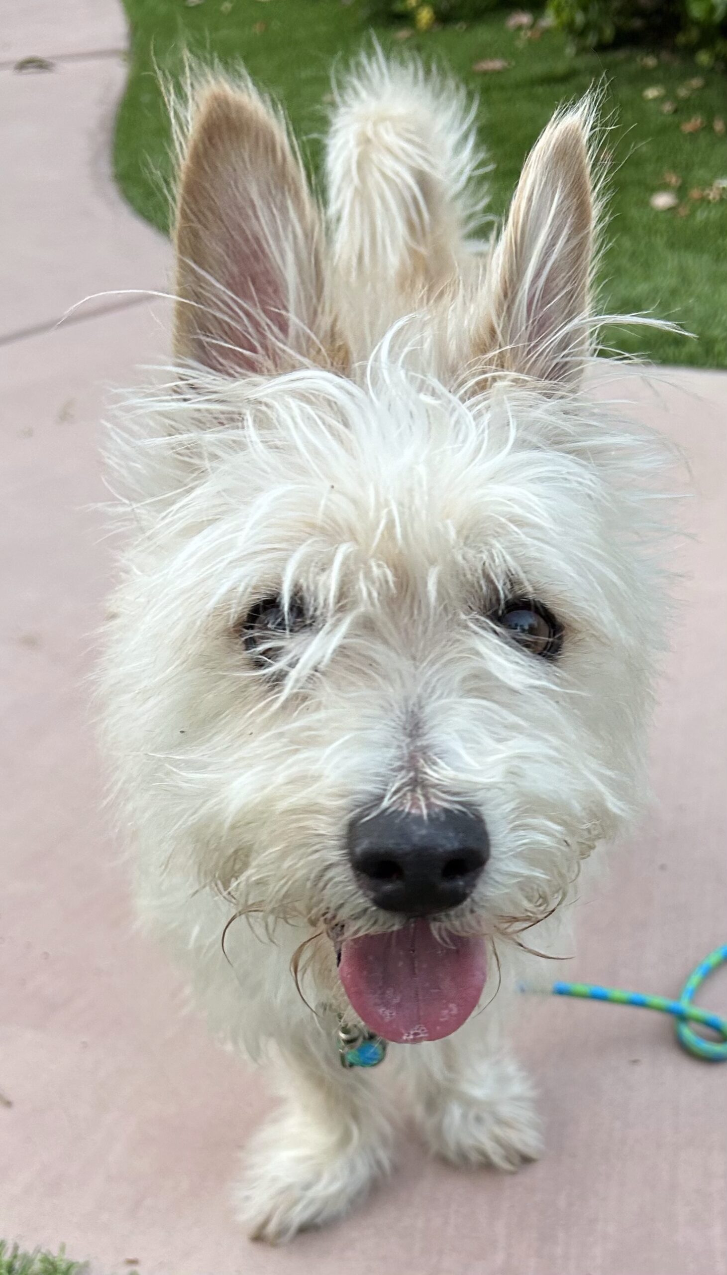 Tinker is a slim trim fellow at just about 12 lbs, and he has certainly maintained a fine figure for a dude of 10½ years. He is a happy boy with a very accommodating personality–it must be that white/tan, westie/cairn look that he has about him.