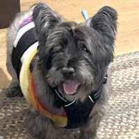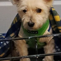 Biscotti's adoption fee has been pre-paid by a generous donor! Biscotti is a white-westie-hopeful and weighs barely 10 lbs soaking... Jazzy is an active young Cousin Terrier, only two years old, demurely white in color with pretty grey accents. This... Maestro is just a slip of a boy, barely 11 lbs, with soft searching brown eyes. His coat is as... Rennie is a happy, affectionate 13 year old black brindle cairn terrier boy. He came to us an owner surrender.... Rissa is a sweet and friendly Westie girl that was picked up off the street by a local rescue. Rissa... "Salty" is my name and Salty is my game. I am a happy 10 year old, 21 lb cairn boy... Sweet Pea is happy and outgoing. Friendly. Good with other household dogs and likes to play with them. Tanner is an extremely sweet 9-year-old boy who originally hails from NYC. He weighs 12 lbs and loves Everybody. Stay...